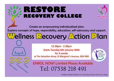 Restore Recovery College works to lessen health disparities in the South Bradford and BD4 communities.